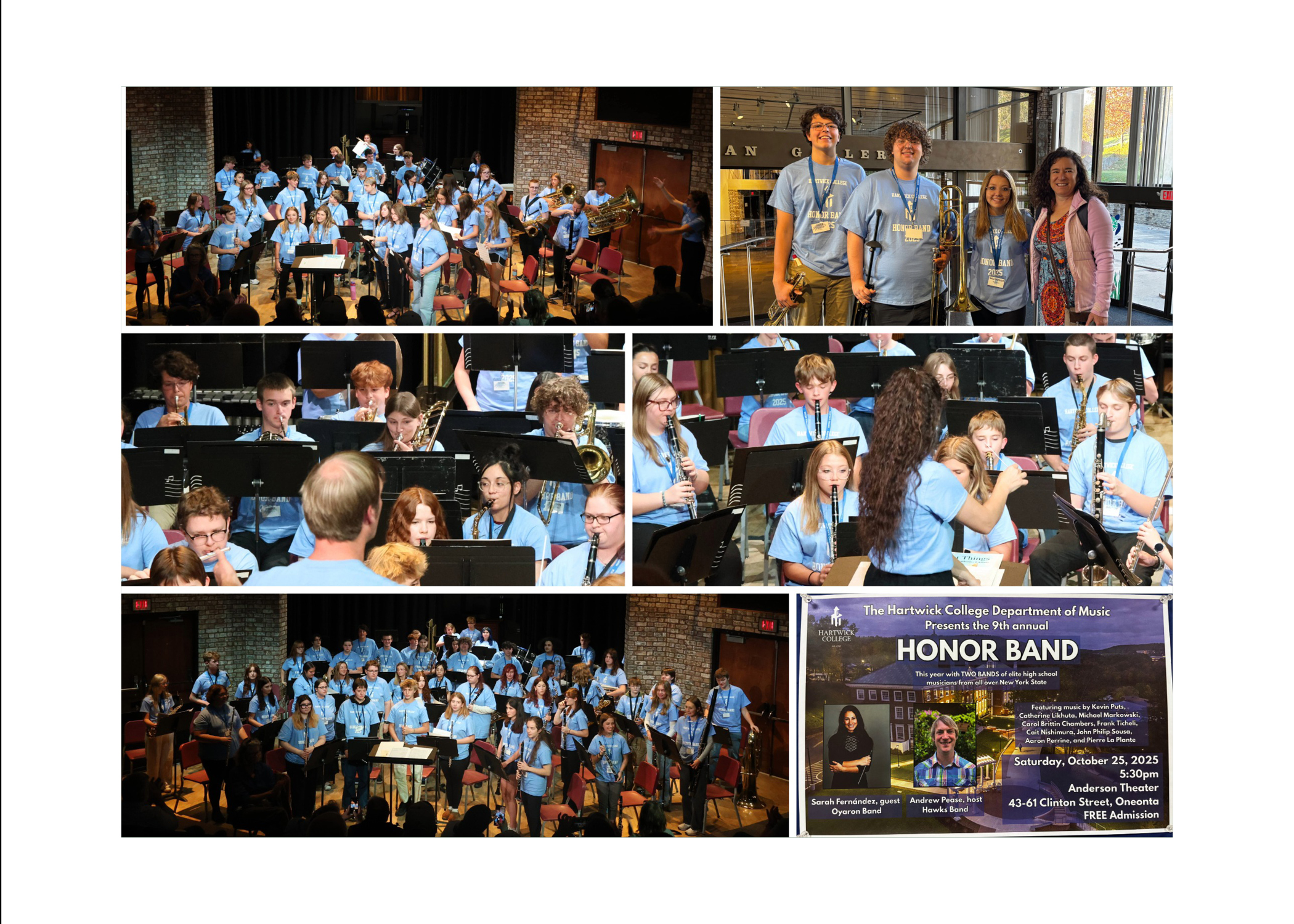 The day’s rehearsals began at 9 am, with a break after lunch for a Hartwick Wind Ensemble performance and college Q&A, followed by sectional rehearsals with Hartwick faculty and students, more rehearsals, and culminating in the Honor Bands’ Concert in the evening in the Anderson Center for the Arts.