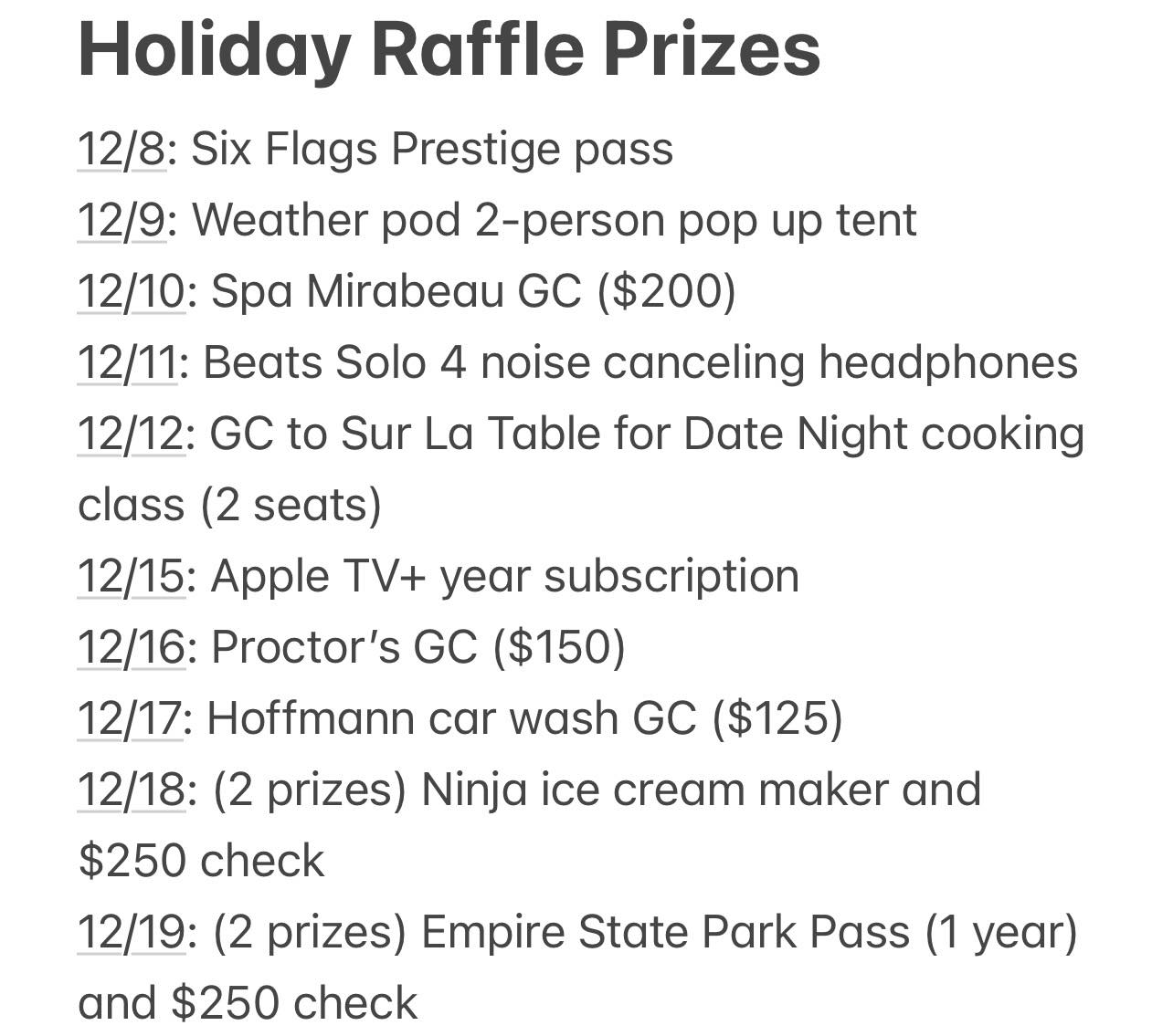 BNL Booster Club 2025 Holiday Raffle Update