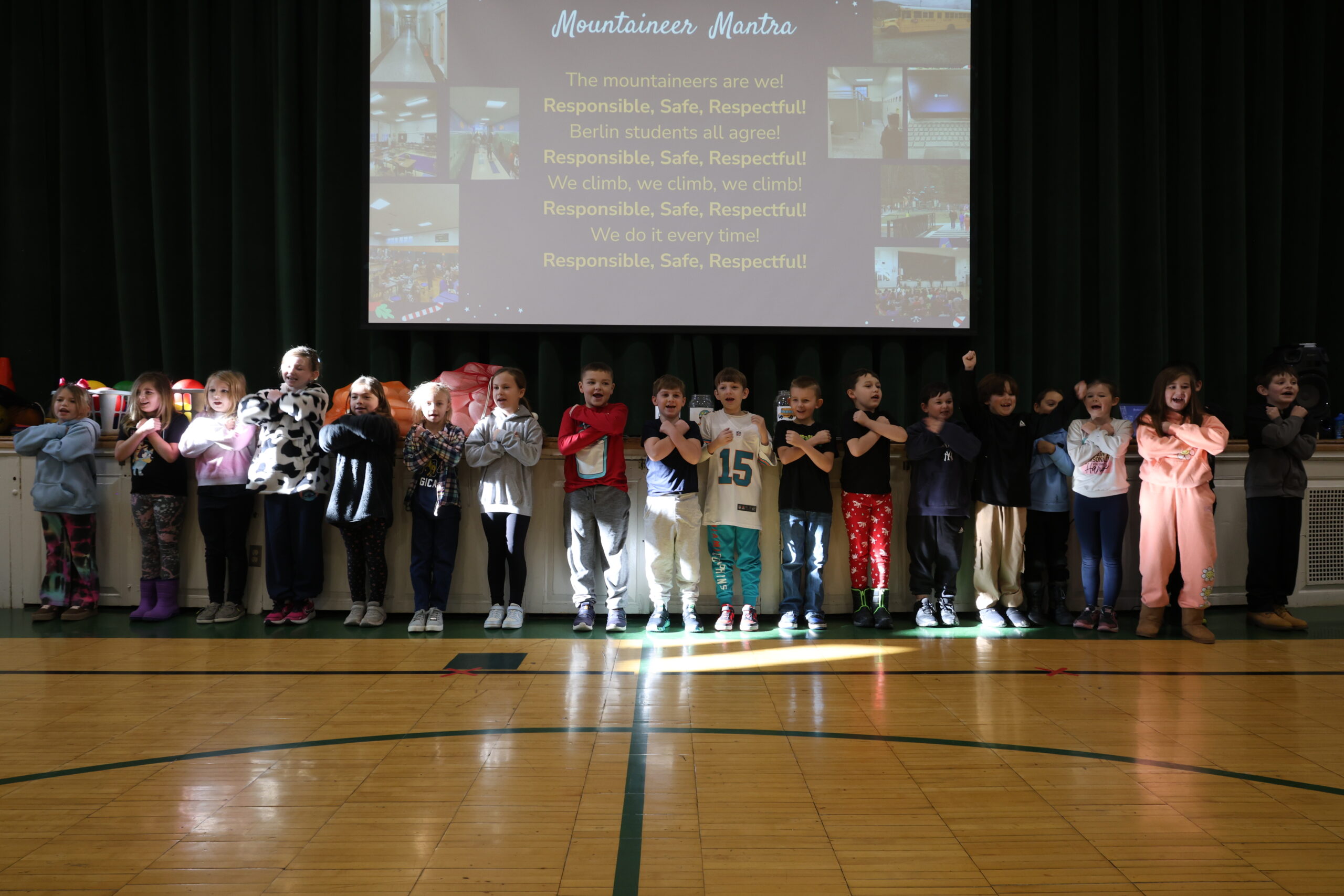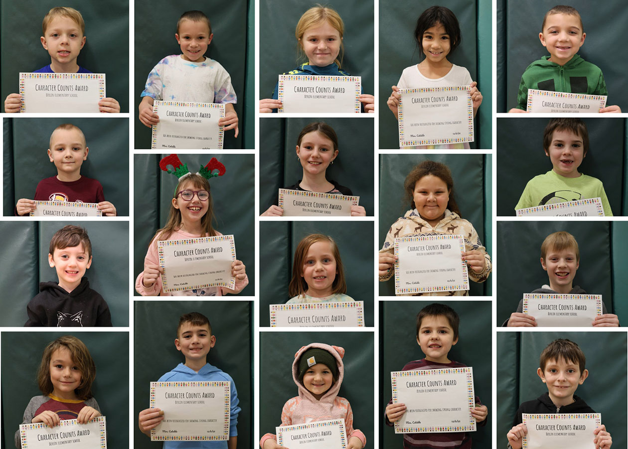 Berlin Elementary School’s Kindergarten through 5th-grade Mountaineers once again came together in December for a Character Education Assembly, celebrating peers who embody the monthly character trait and inspiring others to do the same!