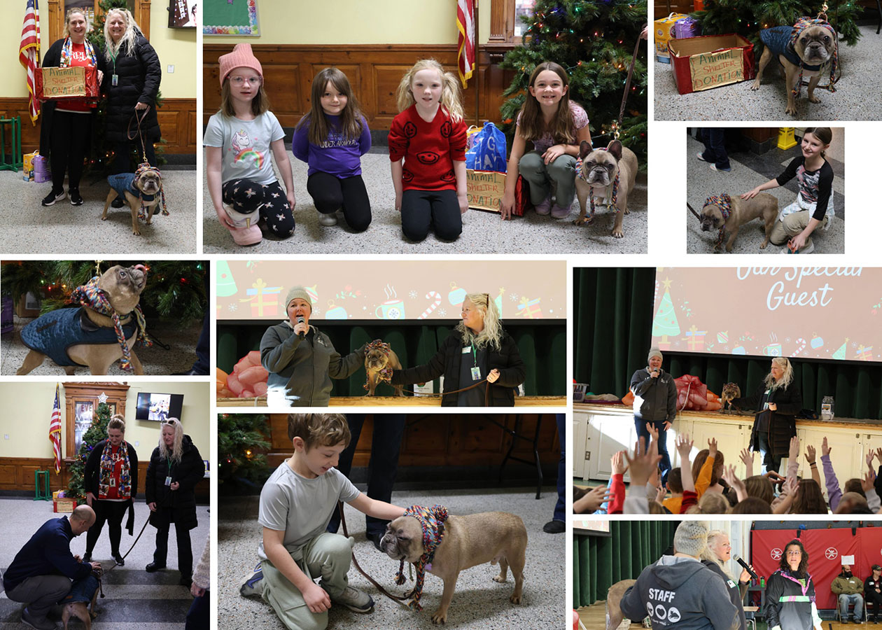 For the last 26 years, first-grade teacher Mrs. Tracie Heinrichs has been supporting the Mohawk and Hudson River Humane Society in Menands, and once again hosted a pet drive, collecting donations of food and supplies for animals in need. To launch the drive, Mrs. Heinrichs invited special guest dog Bane and Mohawk and Hudson River Humane Society Vice President for Shelter Operations, Ms. Nancy Haynes, and Director of Community Outreach & Engagement, Ms. Melanie Stevenson to the assembly. Ms. Haynes and Ms. Stevenson talked to the students about their work at the shelter and shared important tips with the Mountaineers about caring for their pets.