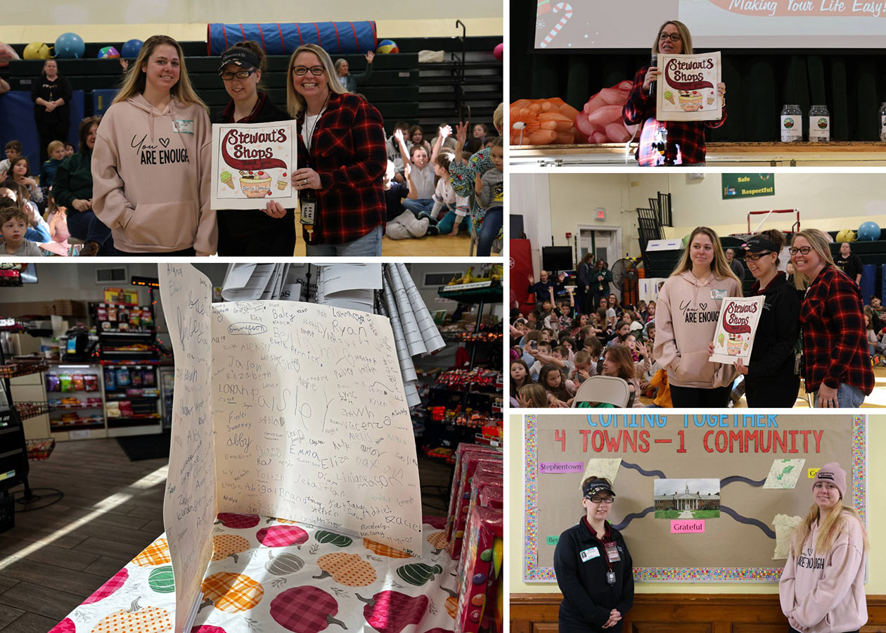 The first was the Stewart’s Shops Match program, the Character Education team invited local Stewart’s Shops Superstars, Ms. Lorie and Ms. April, to the assembly to receive a card and acknowledgement for the generosity of the Stewart’s Match grant program. From Thanksgiving Day through Christmas Day, Stewart’s customers generously donate to the program at the register, and each individual donation is matched penny for penny by Stewart’s Shops. 100% of the funds benefit local, non-profit children’s organizations and students at Berlin CSD, through its programs, including the BNL Booster Club and PTO, are benefited. Thank you to all the community members who generously donate their change and for the generosity of Stewart’s Shops for matching it. Customers’ generosity has helped Stewart’s Shops raise and donate over $39 million since 1986. Thank you, Ms. Lorie and Ms. April, for being wonderful Stewart’s Shops representatives and awesome BCSD Moms and Community Members.