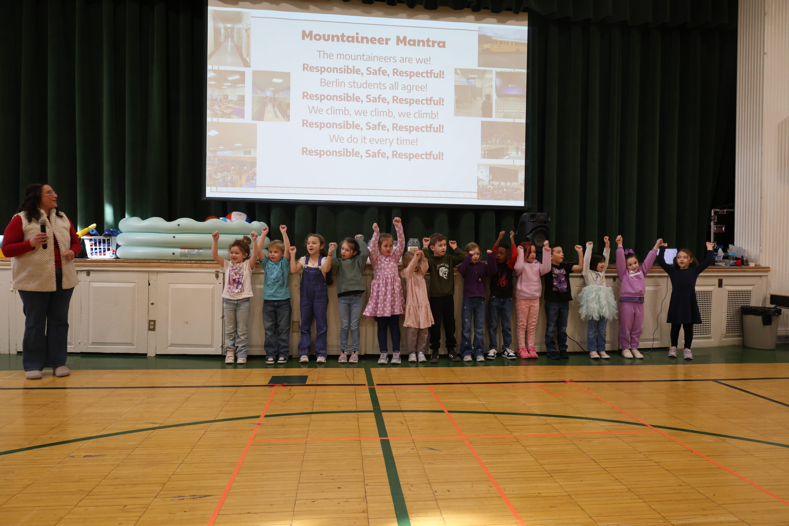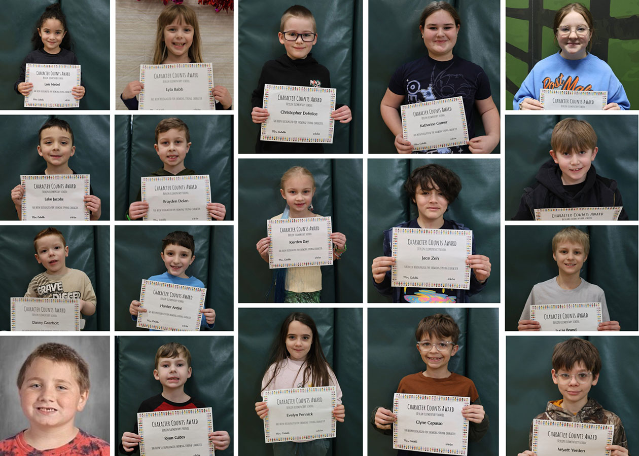 Berlin Elementary School’s Kindergarten through 5th-grade Mountaineers gathered in February for a Character Education Assembly, celebrating peers who embody the monthly character trait and inspiring others to do the same!