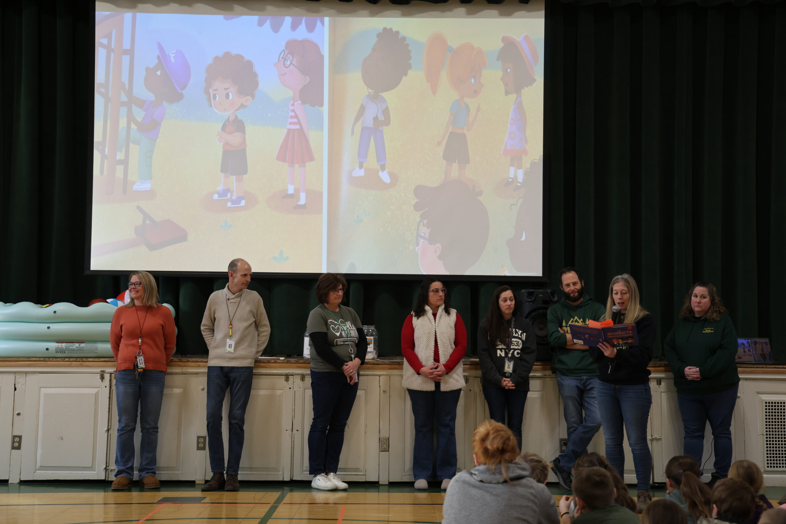 The character trait for February was diversity, the idea that people are different in many ways and that these differences make us all unique and special. To demonstrate the trait, BES staff members took turns reading aloud the book Our Diversity Makes Us Stronger, by Elizabeth Cole during the assembly.