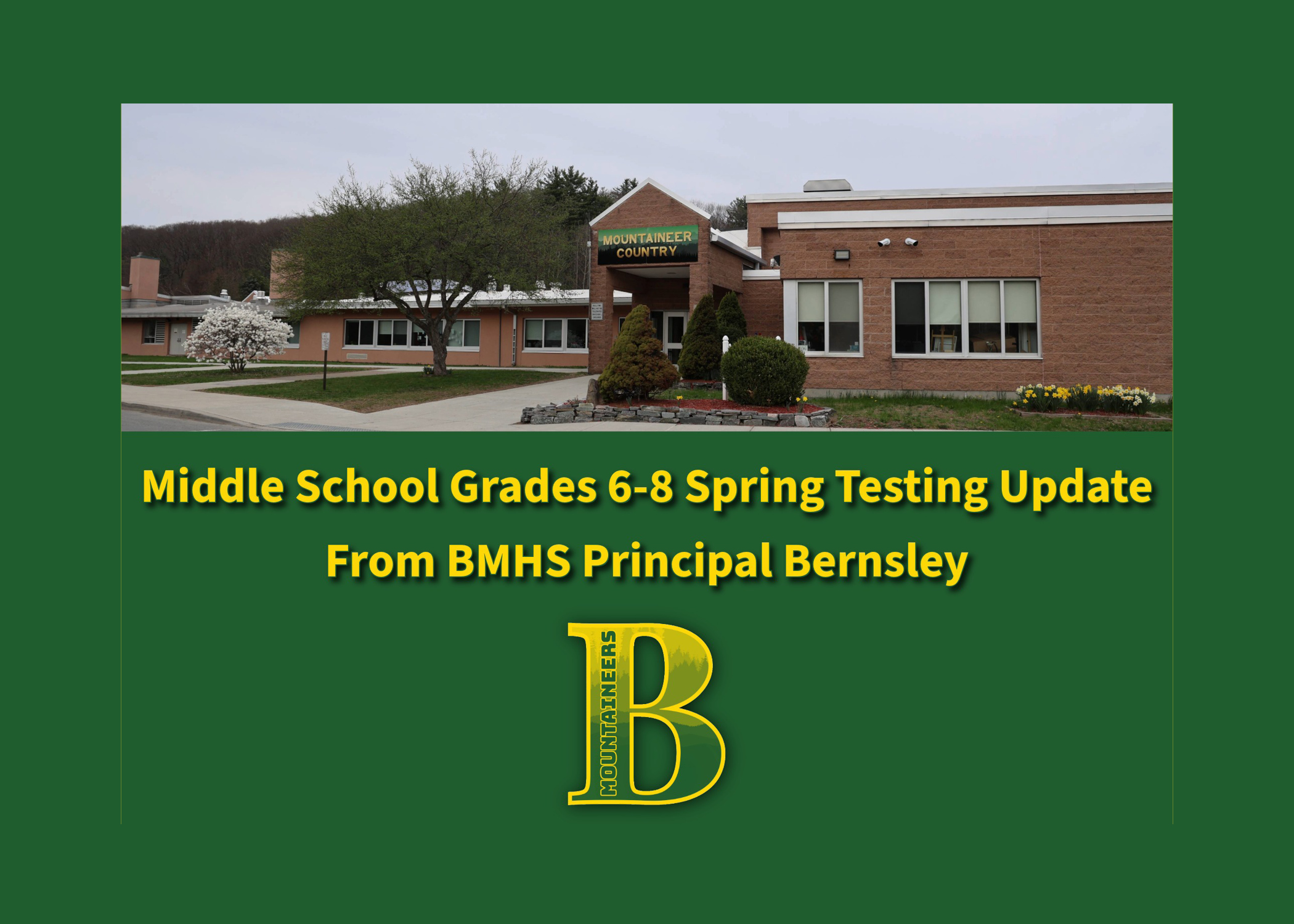 Please find a copy of the letter emailed home to BMS families of students in grades 6-8 regarding the NYS Spring testing schedule and information below. If you did not receive this email please update your contact information with the main office.