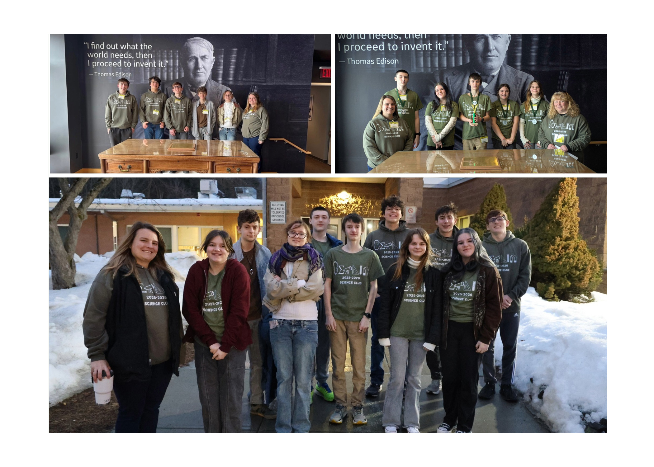 The Berlin High School Science Olympiad team traveled to Ballston Spa High School on January 31st. Our team consisting of Luke Turetsky, Roddy Gardell, Nate Goodermote, Charlie Young, Lillian vonSchilgen, Mackenzie Lowell, Anthony deLaurentis, Norah Smerdon, Valentina Popov, and Penelope Haass competed in 23 different events and were competitive with many schools in the capital region. Charlie Young and Lillian von Schilgen won first place in write it/do it and fifth place in helicopter. We will miss our seniors next year and wish them all the best! Great job representing Berlin High School in a very competitive environment!