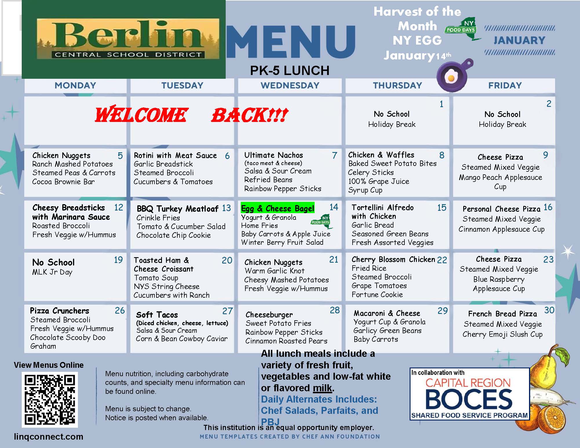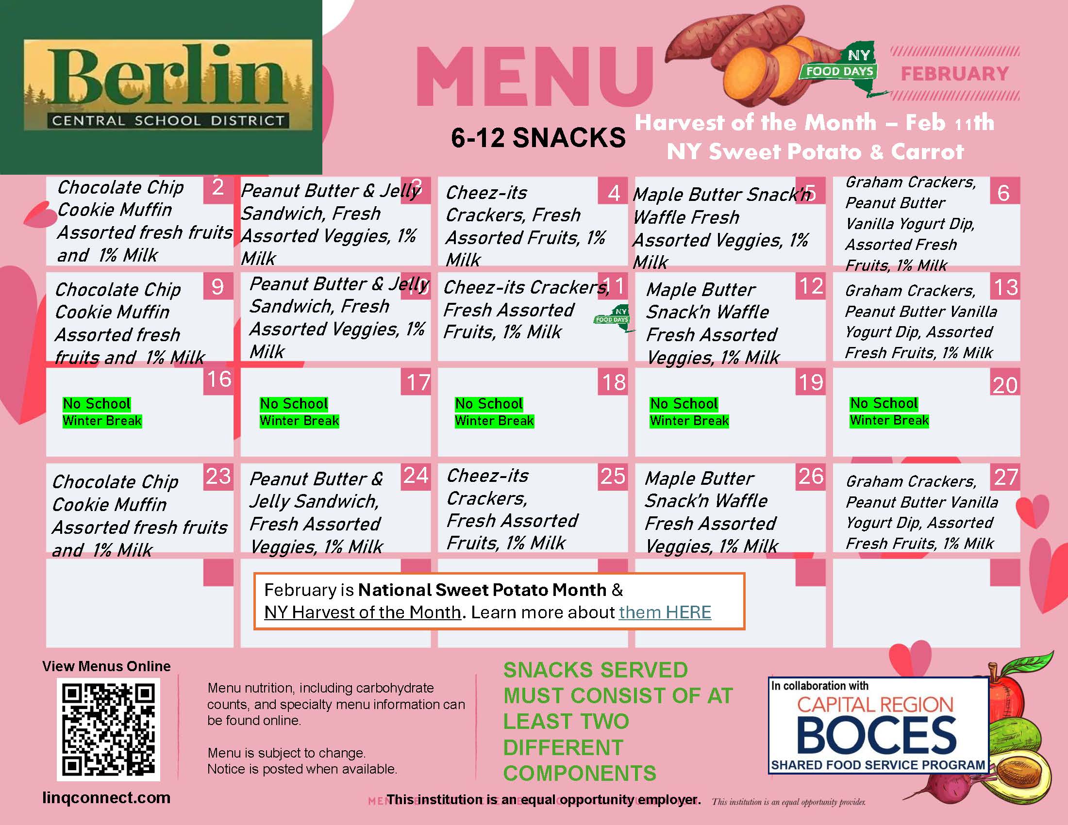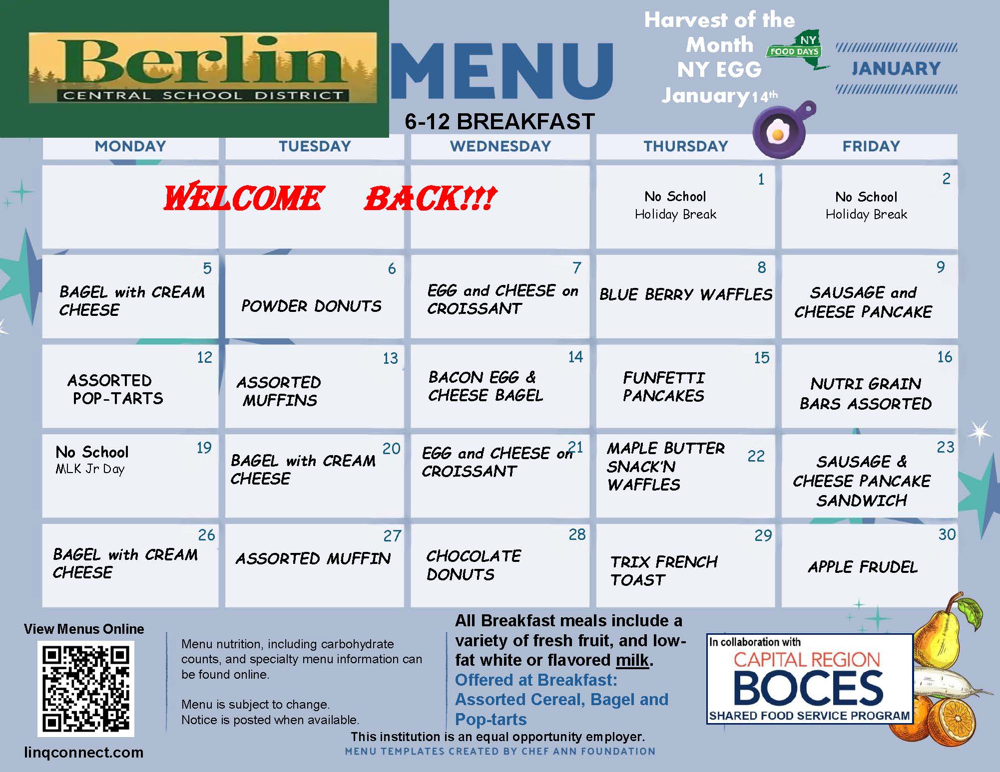 All Berlin Central School District students are eligible to receive FREE school meals (1 breakfast and 1 lunch per day), regardless of family income, through the Community Eligibility Provision (CEP). Additional meals, snacks and a la carte items will still need to be paid for. Students will be able to purchase those items with cash or funds available on their LINQ Connect accounts.